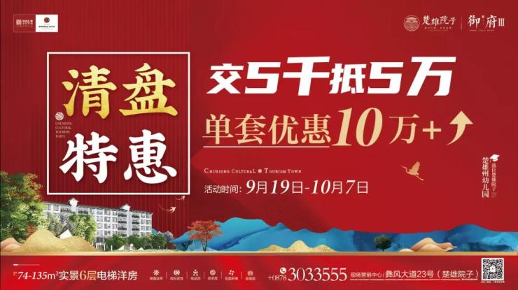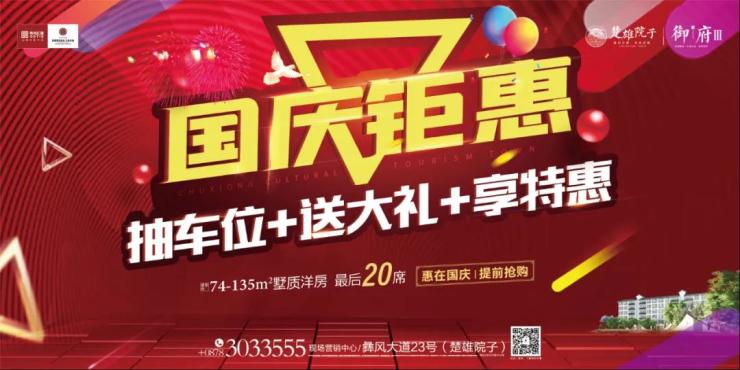 楚雄院子国庆大放“价” 购房享千万钜惠 百万大奖免费抽 缤纷活动天天乐 10月1日-10月7日 特惠好房等您选,百万大奖等你抽