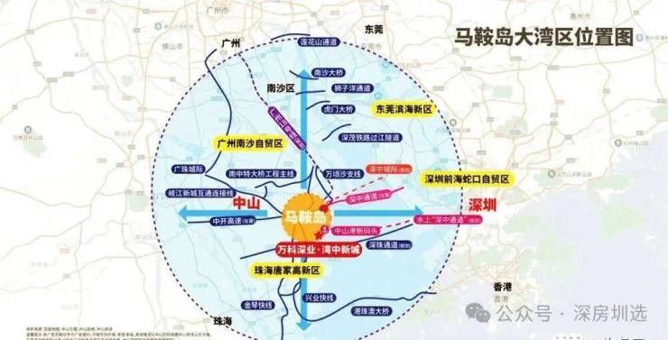 万科深业湾中新城,是位于中山市马鞍岛之上。这个区域是大湾区城市群交通的中芯,交通上能实现多方位互联。