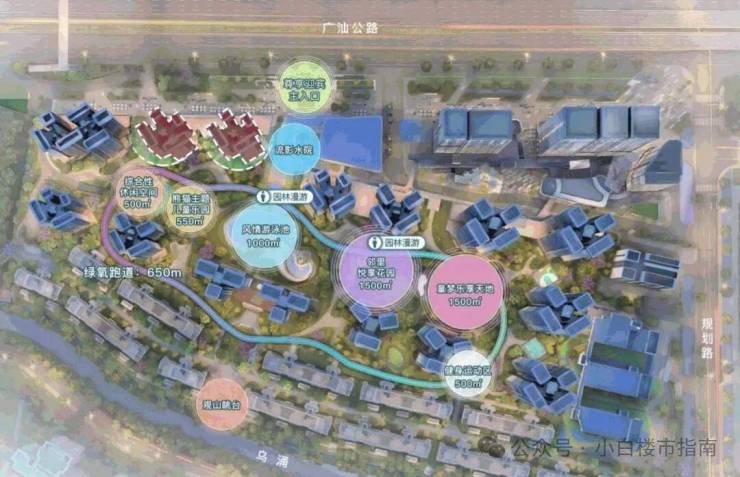 项目自身配建了一所24班的幼儿园,没有配建小学,需要统筹周边入读,附近的话有科学城小学(南校区)黄埔军校小学、黄陂小学(市一级)中学有第117中学、黄埔军校中学(今年9月份开学)、还有规划中的一所小学+一所中学。