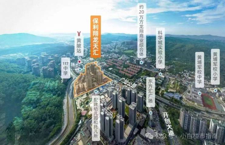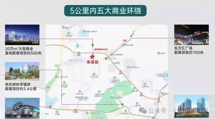 周边5公里范围内还有萝岗万达、奥园广场、天河万科广场,此外,项目步行到黄陂最大的商业——约20万平翔龙综合体,仅约500米,目前已封顶,在对外招商中
