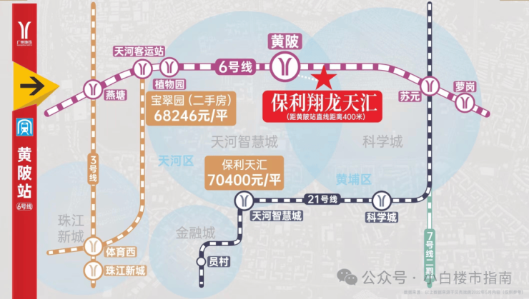 项目与地铁6号线黄陂站直线距离仅400米,步行可到达,1站可以到达天河,6站天河客运站,还可换乘3号线抵达体育西路和珠江新城,往东3站也能到萝岗,换乘21号线直达金融城,家门口还有长安公交站,目前也开通了多条线路,