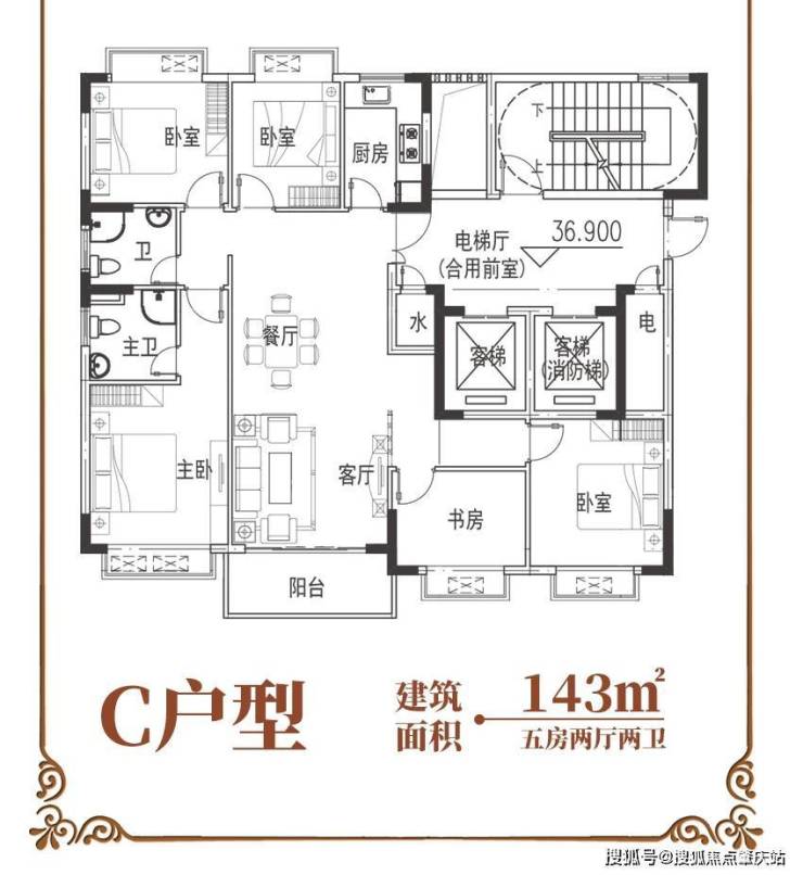 户型面积:112m精致3房、约126m舒适4房、143m2奢阔5房