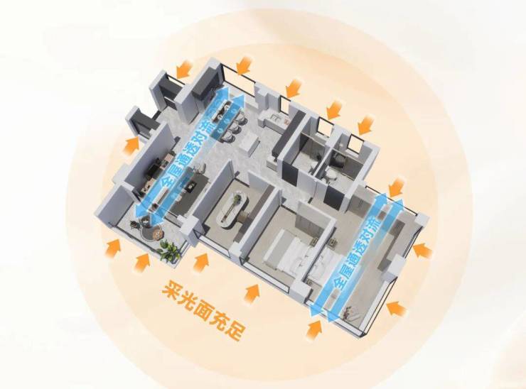 放眼整个白鹅潭,小三房固然稀缺,但能做到全屋空气对流+双卫的80平以下小三房,仅此一盘。