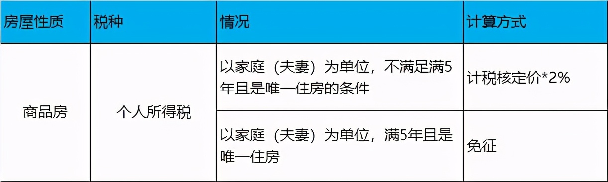 1、契税:不动产产权发生转移变动时,就当事人所订契约按产价的一定比例向新业主征收的一次性税收。下图为普通住宅契税缴纳计算方式