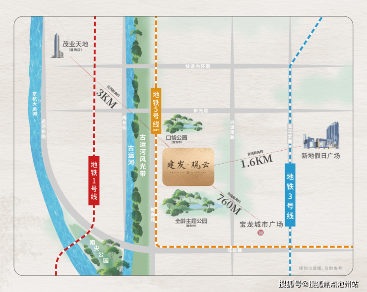 【高颜生态】一步古运河风光带,咫尺全龄主题公园(规划中)、口袋公园(规划中),距9.7万方南尖公园约800m(直线距离)