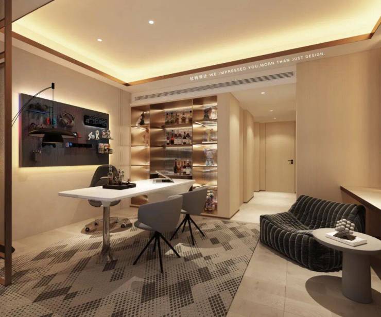 在软装设计改造的方向上,集合了电竞,品酒,收藏,阅读等休闲娱乐的功能于一体进行打造