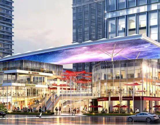 遮阳云影天幕,采用高性能投影系统,打造巨型天幕广场。