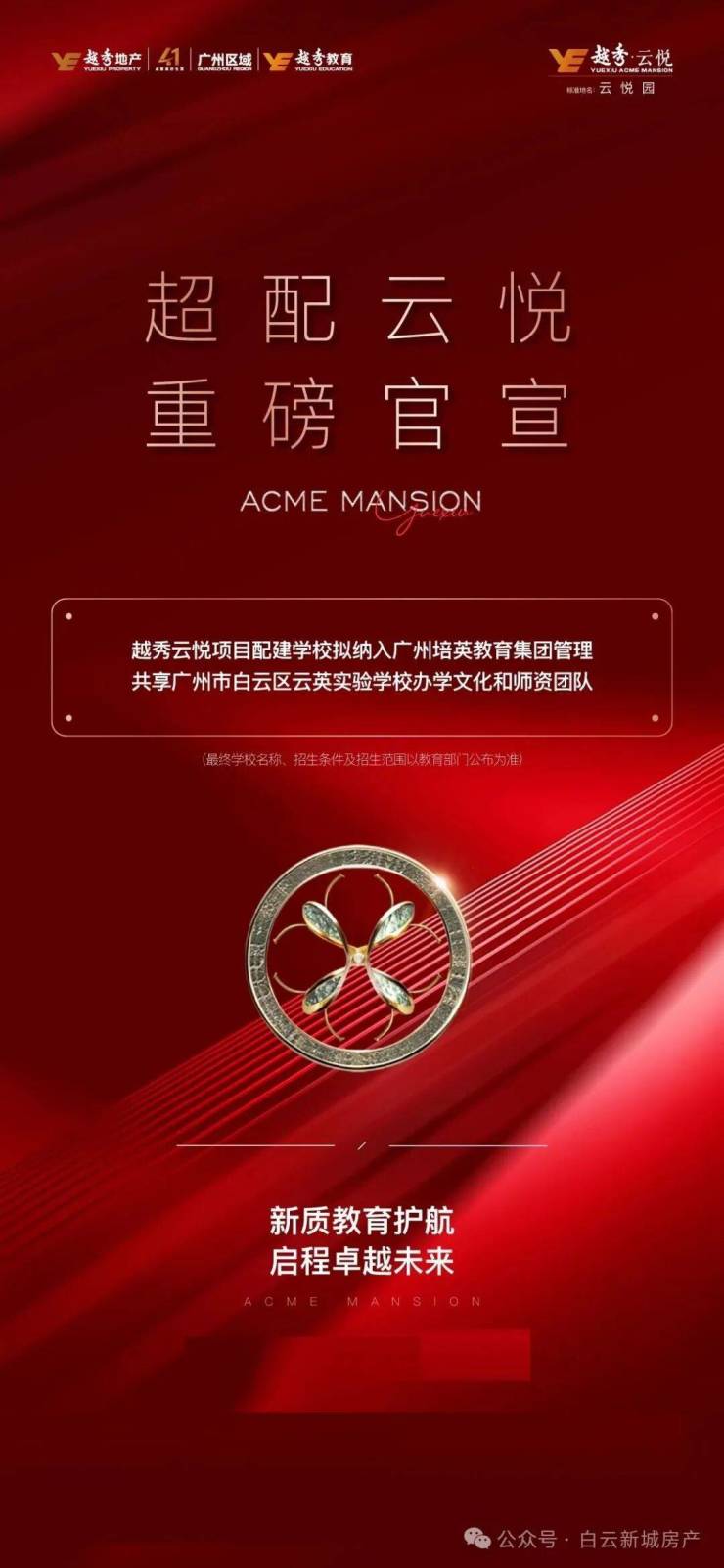越秀·云悦在教育配套方面的表现尤为突出。项目配建了一所24班的小学和一所9班的幼儿园。近期已经确认配建的学校由培英进驻,之前的各方猜测,最后有了结果。