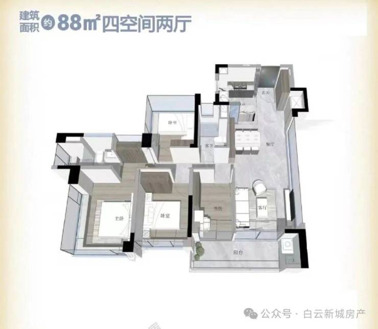 2.在售楼栋:目前在售的户型包括88平四房和105平两种户型,设计精巧,满足不同家庭的需求。