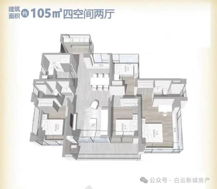 2.105㎡,四房二卫户型