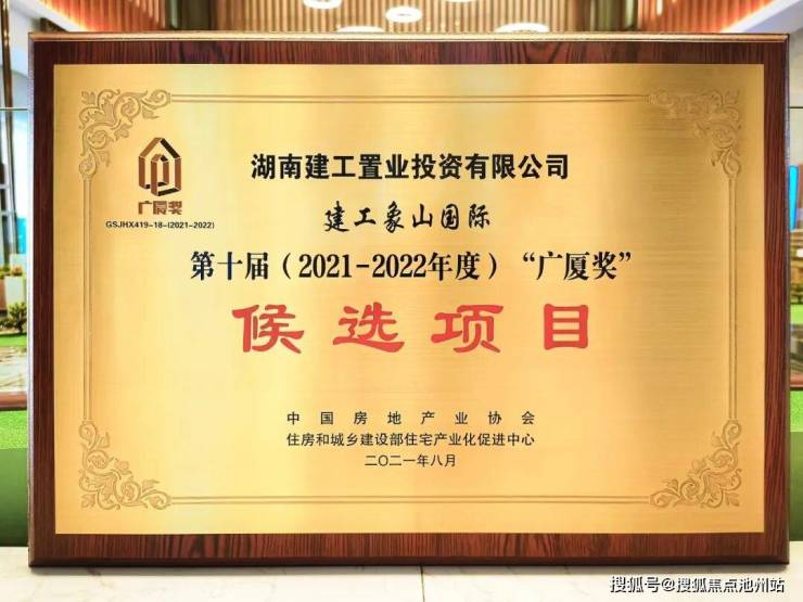 2021年7月30日,建投·象山国际成功入选(2021-2022年度)“广厦奖”第二批候选项目,也是湖南唯一入选该批候选名单的项目。日前,更入选湖南省住建厅《湖南省首批住宅物业住房品质楼盘创建名单》,省内仅7家入选。继受到市场追捧后,再获行业最高荣誉,政府权威认可。