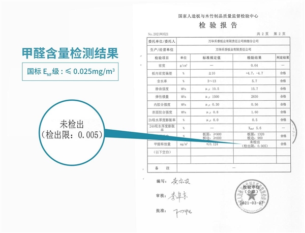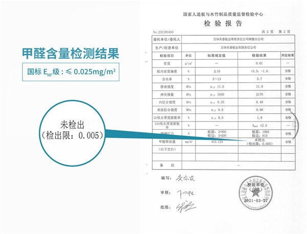 此外,从箭牌家居定制新一代升级禾香板产品的基材检测报告可看出,甲醛释放量低于检出限0.005。ENF标准为0.025mg/立方米,而检测报告的结果显然远优于ENF标准,箭牌家居定制产品是当之无愧的环保产品。箭牌家居定制从产品源头灌注箭牌精工制作的匠心传统,用“无醛添加”的家居定制产品,为人们构建健康环保的绿色生活空间,尽较大努力守护消费者的健康。