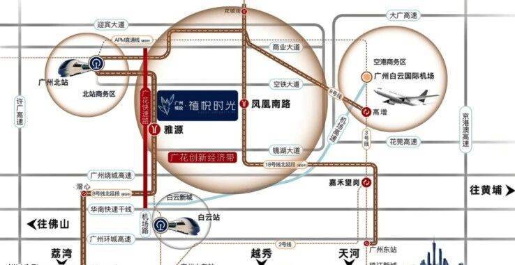 在建的 8 号线北延线将贯穿广花新城板块,并设有雅源站和东镜站。
