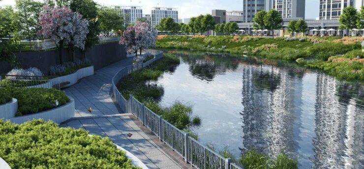项目在生活配套上有一定的规划。售楼部在交楼后将改为肉菜市场,沿街也规划了商铺,基本能满足业主的日常需求。项目内还打造了约 280 米滨水景观带,业主可北眺花都湖国家湿地公园和秀全公园,享受休闲绿道带来的惬意生活。