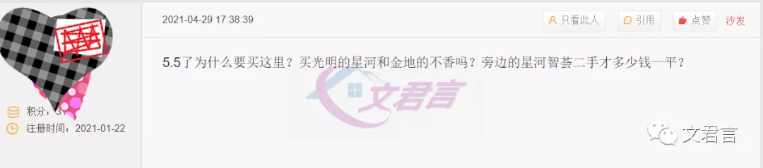 有网友在论坛吐槽:5.5万/㎡价格为什么要买这里,买光明的星河和金地不香吗?旁边的星河智荟才多少钱每平?