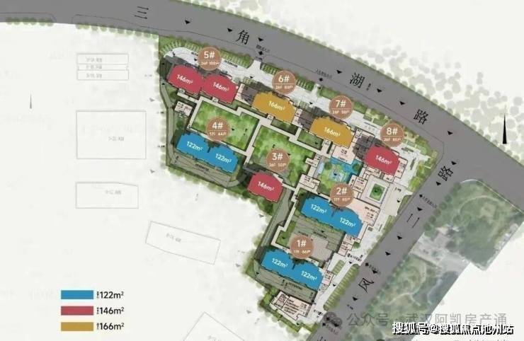 首推楼栋都紧邻小区大门和景观庭院、会所等,7、8号楼位于小区北侧,高区可看三角湖,视野极好。