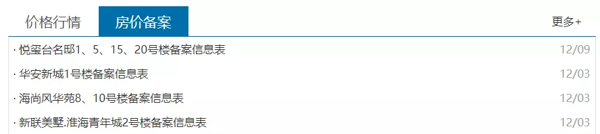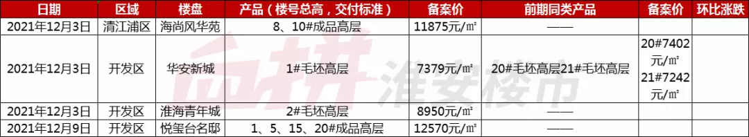 据淮安发改委网站显示,12月份一共公示了淮海青年城、海上风华苑、华安新城和悦玺台名邸4家新房的备案价。