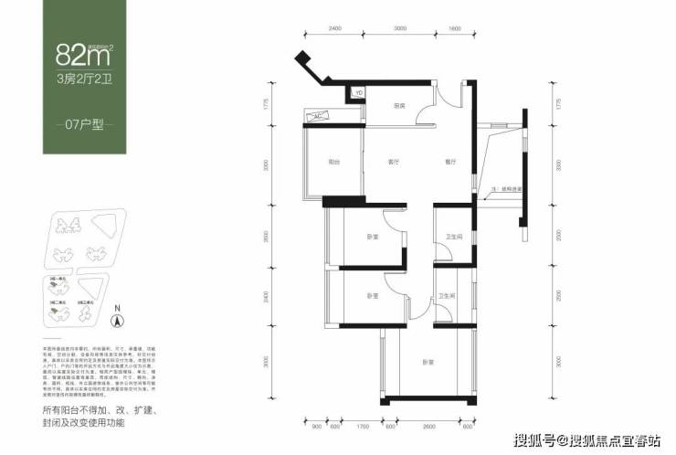 82平3房2卫: