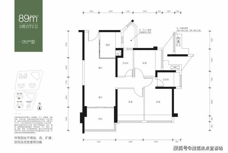 89-90㎡3房2卫490-600单价:4.5-5.2万
