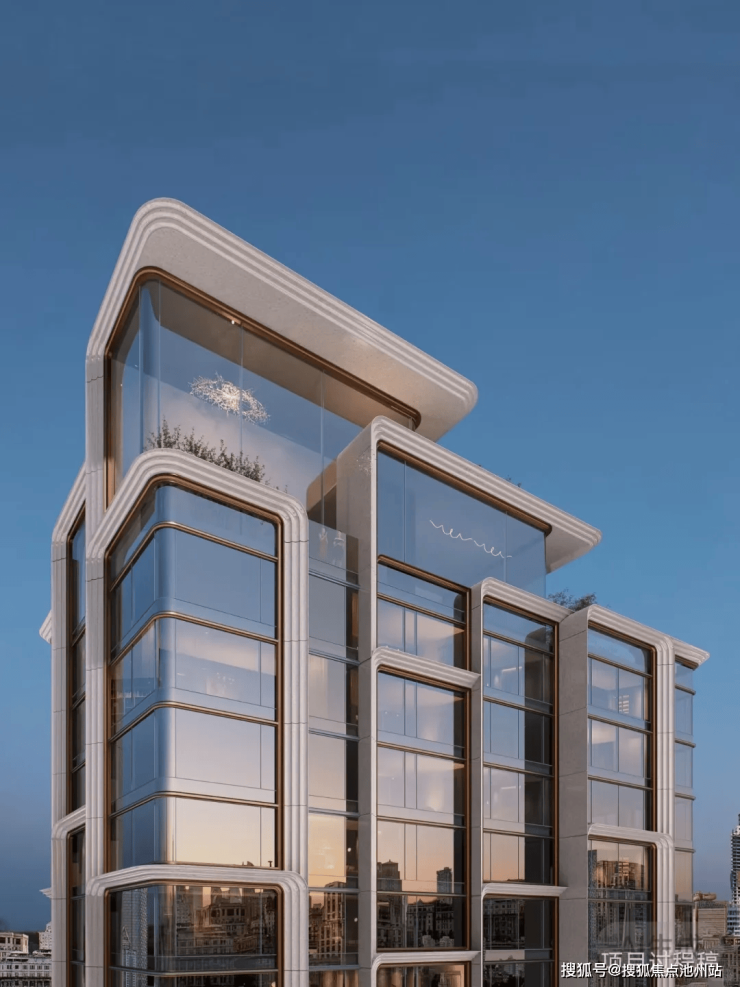 元序采用大面玻璃幕墙,通过搭配仿石铝板、釉面陶板等高端材质,组成“超流体屏”;将天然石材与高迪曲线完美搭配,虽为现代风,却无绝对直线棱角,自然形成艺术感极强的建筑单体。
