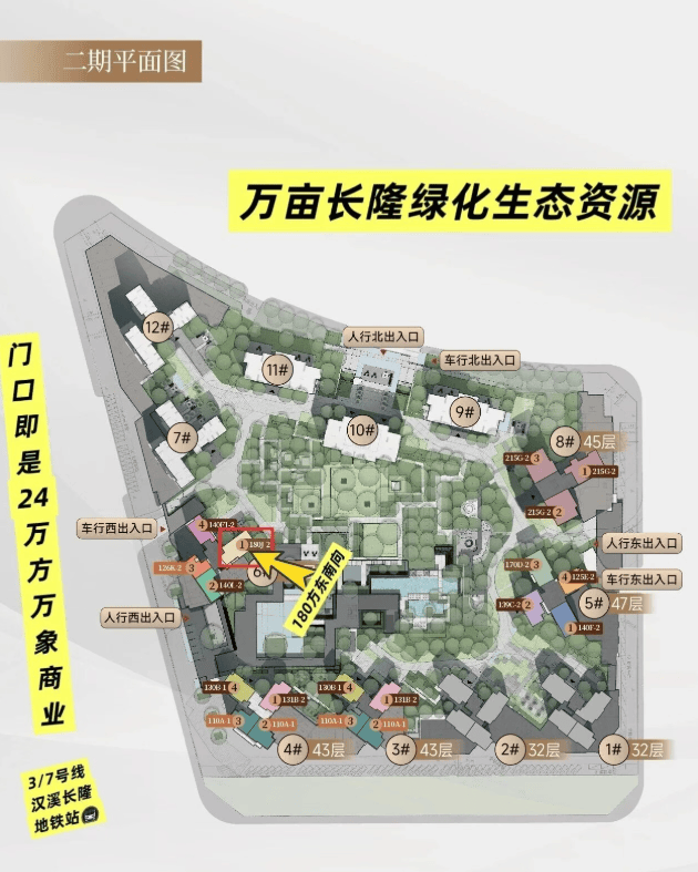 二期距离地铁3/7号线汉溪长隆站就更近了,下楼就是地铁口