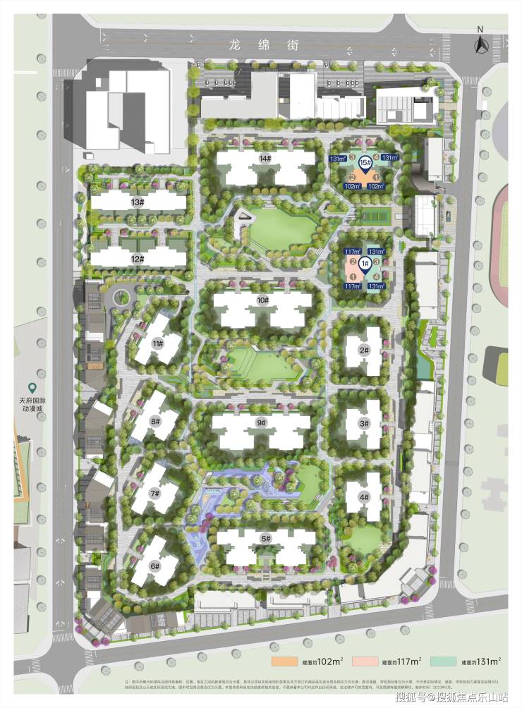 主城稀缺百亩大盘:项目占地约120亩,是目前成都主城区在售的单一地块占地最大的项目之一,采用大围合式+大中庭布局,最大楼间距达104米,保障了开阔的景观视野与优良的通风采光条件。