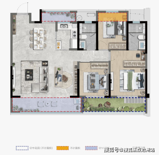 南向阳台升级到四阳台,双联生活阳台+双联“空中花园”。北向带生活阳台,这么多的阳台,观景黄昏小酌有阳台,凉晒衣服有阳台,连家政洗涤还有阳台。