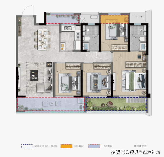 洞察年轻人的需求痛点,虽然是“上车门槛型”户型,但在预算控制和居住体验上,两手抓、两手都硬。
