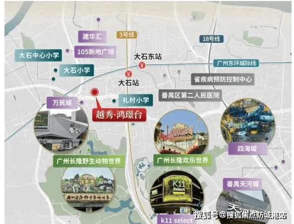 越秀鸿璟台地处番禺大石核心发展带,东接四季花园、明珠花园,西邻怡景花园,北望长隆旅游度假区,南靠大山村成熟社区,生活氛围浓厚且界面整洁。