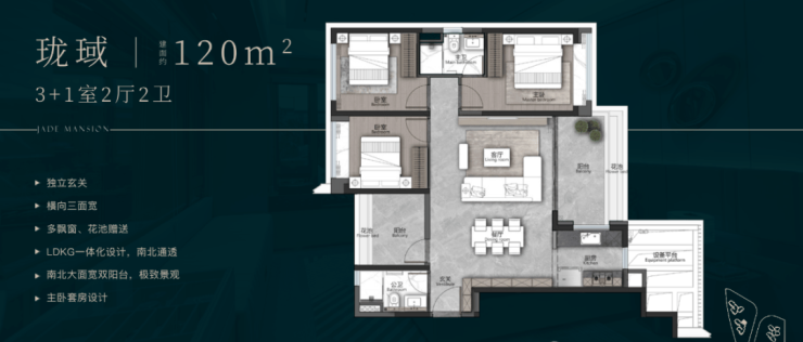 南北对流双阳台,南向阳台长约7.5米!搭配LDKG一体化,突破空间局限,拓宽了娱乐、互动、社交等多维场景。