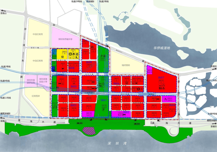 根据中规院在深超总项目方案评审会提供的图纸,深圳湾超级总部基地片区西北角中海地块为住宅用地,其他地块为商业服务业用地、文体设施用地、公园绿地、交通场站用地、供应设施用地。