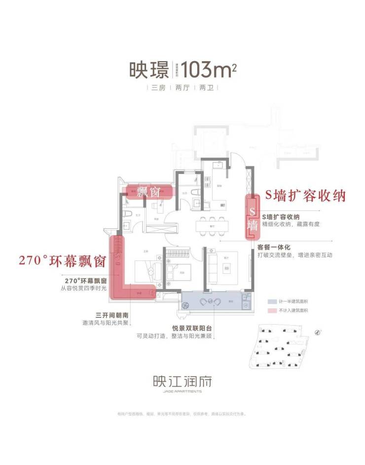 不只关注生活的奢享,更执着优化贴心的细节,映江润府的建面约103㎡户型,厨房岛台带轨道插座交付,建面约89㎡户型带可升降插座交付,灵动随心,为生活更添便利。
