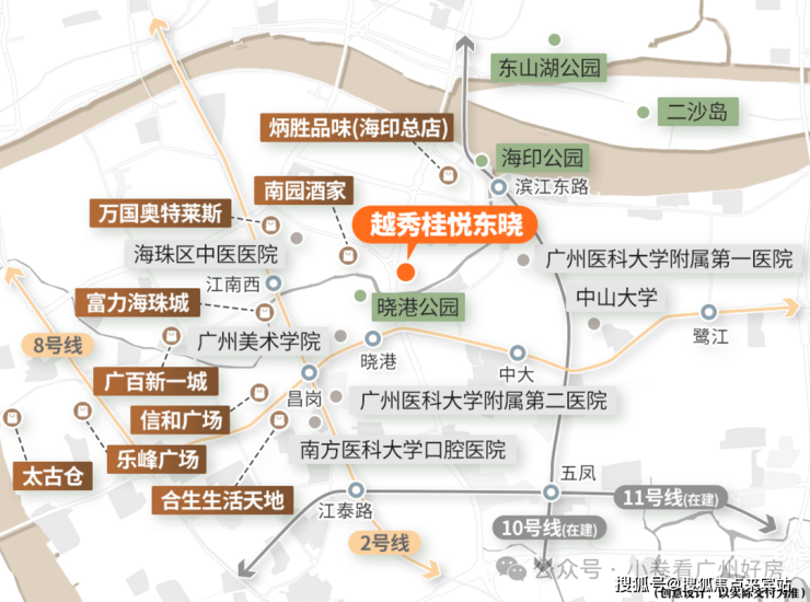 项目周边还有万联购物中心、中大合悦 HeyPark碧乐时光、富力海珠城等商场,以及盒马鲜生、华润万家等超市。