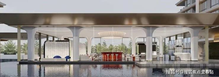 汲取曼谷四季酒店灵感,无边际泳池将奢华建筑与野奢景致自然相融,分区打造立体儿童泳池,特有的叠水景观、水上滑道、攀岩爬道等多元游乐设施,结合城市会客厅、亲水平台和水上汀步等多重景观,营造野奢型国际化度假体验。