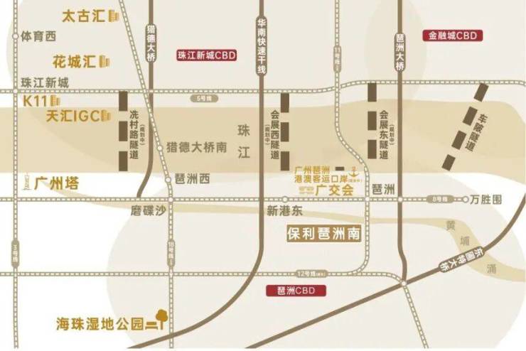 自驾则可依托新港东路、科韵路等主干道,加上在建的琶洲隧道二期,未来 10 分钟能直达天河 CBD,日常通勤或跨区出行都比较便捷。