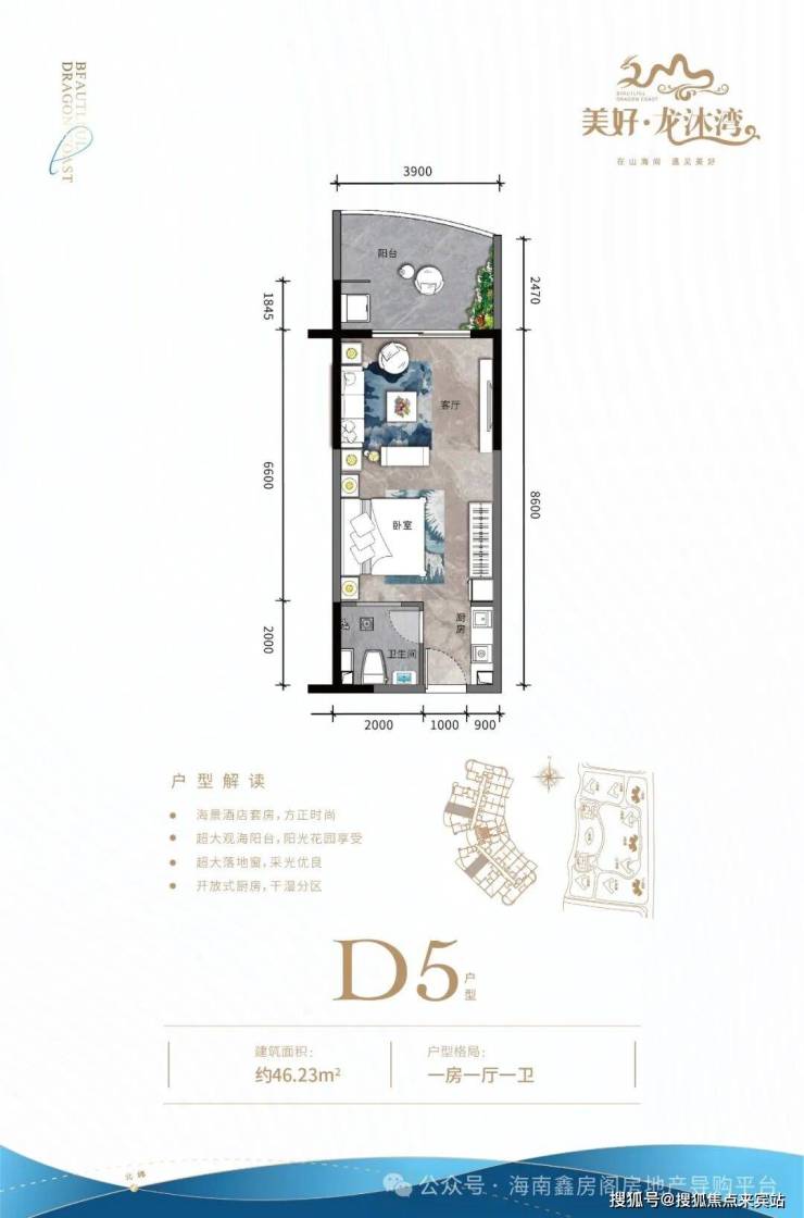 ① 开间户型独立明卫,各功能区域俱全,瞰景阳台,超大景观面宽
