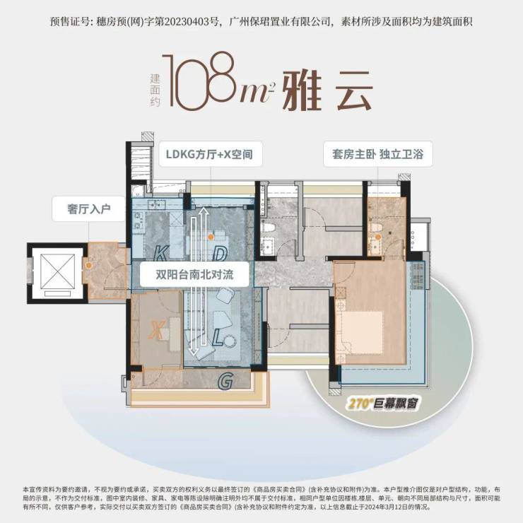 108㎡的户型做南北通透大四房,加上LDKG+X一体化设计以及双阳台。