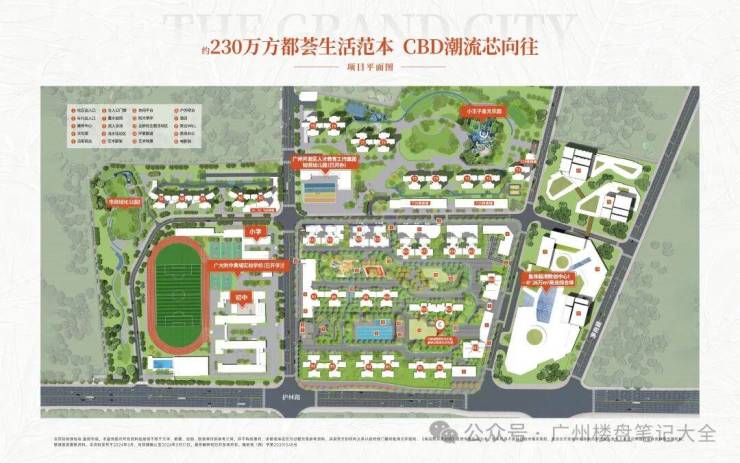 富颐华庭项目总用地约80万㎡,总建面约230万㎡,集居住、商业、园林、教育等各方面配套于一体,处广州第二CBD核心地段,是区域功能丰富、设施齐备、近年来绝无仅有的全配套市中心大盘。