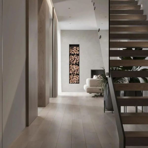 澳思柏恩采用优质进口松木为基材,定向铺装一体成型,承重力强,结构稳定,可有效解决家装板材变形问题。适用于通高柜体、推拉门等各类大尺寸产品,无需拉直器。