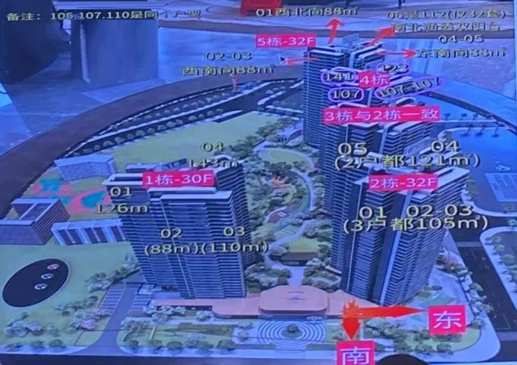 项目总共由5栋住宅楼组成,面积88-143㎡三房和四房的户型。前期推出的A1、A2、A3栋基本剩下尾货了,楼层主要集中在高楼层为主。今年推出的A5栋和A4栋可以选择的单位多一点,105-140㎡的改善型四房。