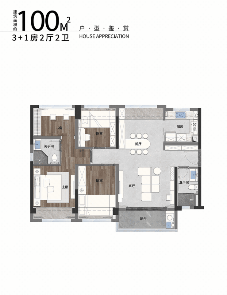 ➯建面约100㎡3+1房2厅2卫