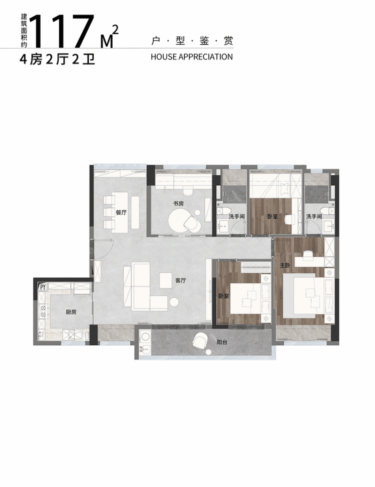 ➯建面约117㎡4房2厅2卫: