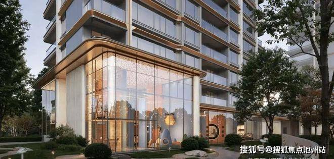 它汲取上海前滩华尔道夫酒店为灵感,以月光米黄石材为主基调,弧形景墙、安第斯雪景奢石柱子、极品铁冬青等结合使用,整体层次细腻,恢弘大气,也是业主身份的象征。
