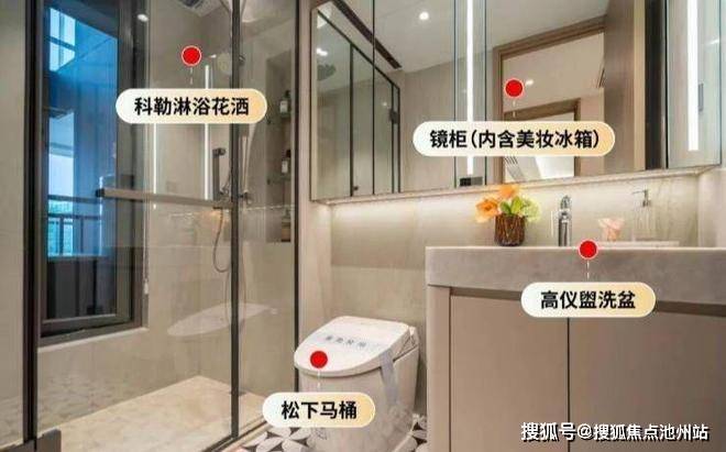 卫生间:高仪的盥洗盆,科勒的淋浴花洒,还特别配置了女主人超爱的美妆冰箱,仪式感满满。