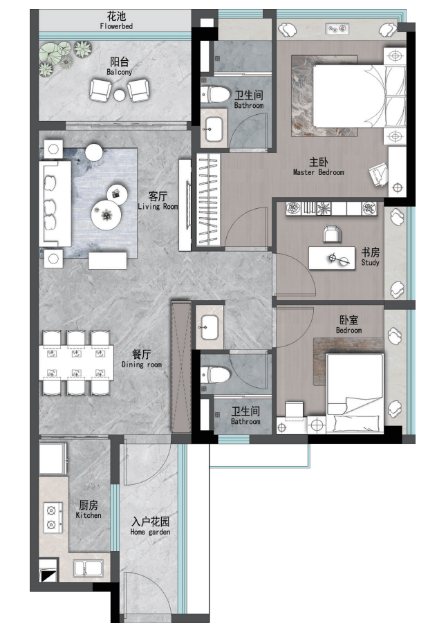- 项目约44万m²大体量,涵盖住宅、主题园林、会所、泳池、幼儿园及九年一贯制学校、肉菜市场、公交首末站等