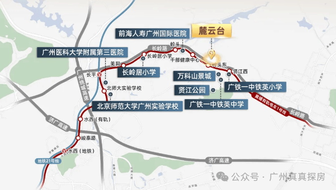 3公里范围内9所学校,享受黄埔区第一梯队教育配套,距离项目最近的是广铁一中铁英小学和中学,还有长岭居小学。项目配建1所九年制学校,稍远一点的,还有北京师范大学广州实验学校,教育配套可谓充足。