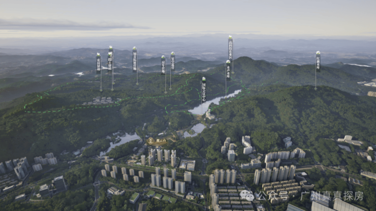 长岭居被定位为广州东部山水新城生态宜居示范区。板块更是以“绿色、低碳、智慧”为理念,构建了一座集高端居住、研发总部、疗养度假、生态休闲、先进制造五大功能于一体的未来之城。很多人提到长岭居,第一印象都是宜居。事实也是如此,在长岭居34.9平方公里的规划建设用地中,约20平方公里被划为法定自然保护区,真正实现了“半山半城”的理想格局。这种富氧山水休闲区,也是广州难以复制的资源。
