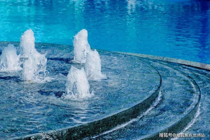 大量的玻璃幕墙+局部铝板等建筑元素的恰当组合,低密的纯洋房大盘在园区中央打造了颠覆性的“六翠之境”:目之所及是一片通透的蒂芙尼蓝,镜面泳池里波光粼粼,倒映着蓝天白云,是真正的“天空之镜”,与边上高大的棕榈树、白色的躺椅、繁茂的绿茵,彼此映衬,海边度假风油然而生。