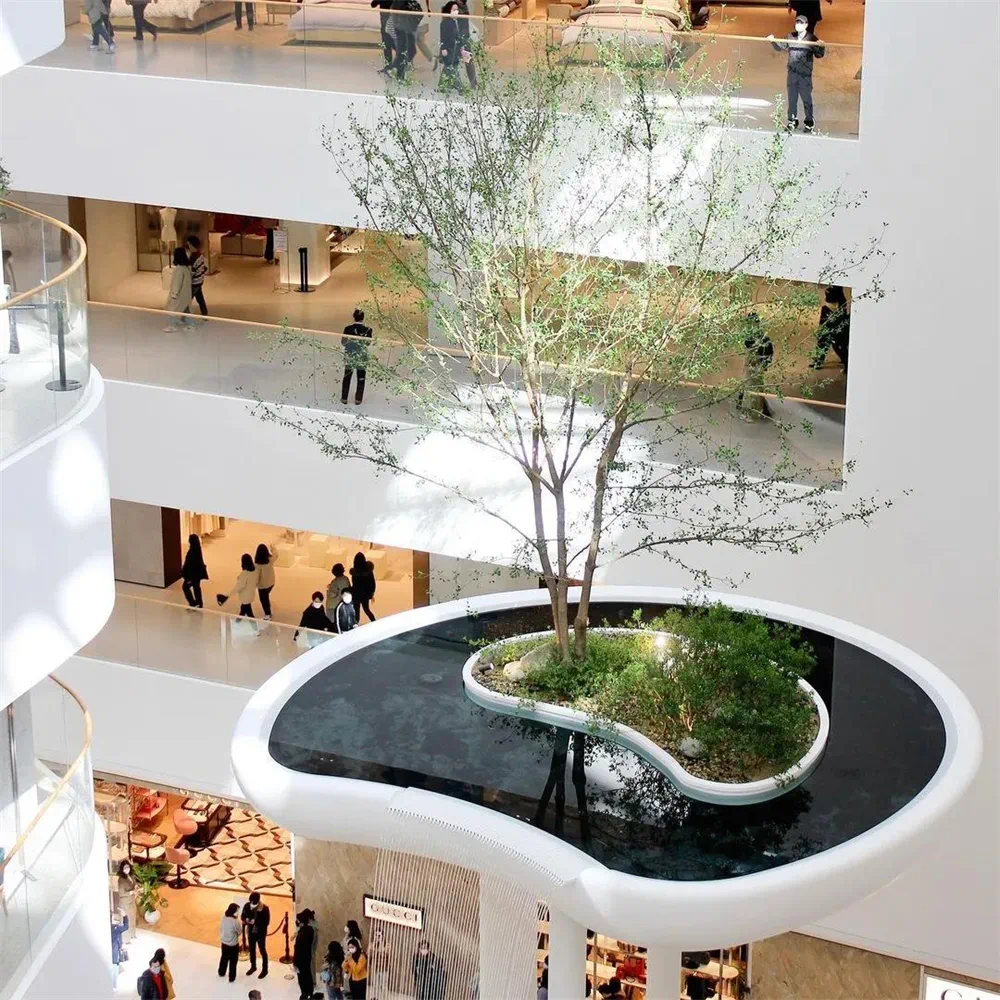 独特的空间体验现代首尔是一个全新的创意概念空间,空间里处处都在体现“自然可持续的概念”。项目将传统的购物中心的动线通道扩宽至8米的超舒适逛街感,还将49%的空间用来创建休憩、休闲社交的区域。