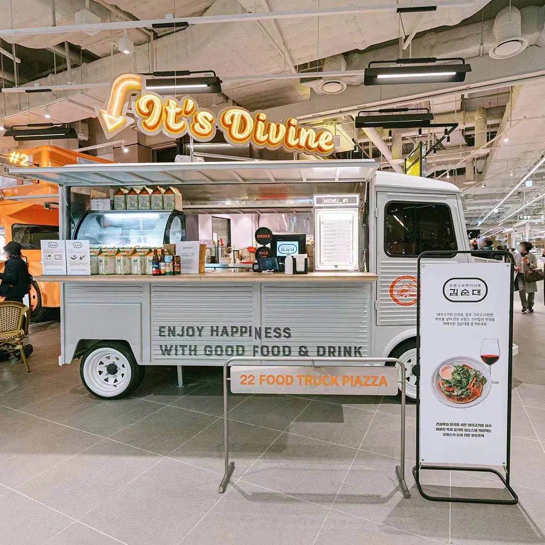 该区域汇集了当下韩国的时尚餐饮品牌,通过食物餐车方式呈现的当地小吃餐饮品牌,将local的本地饮食文化融入在购物中心内。